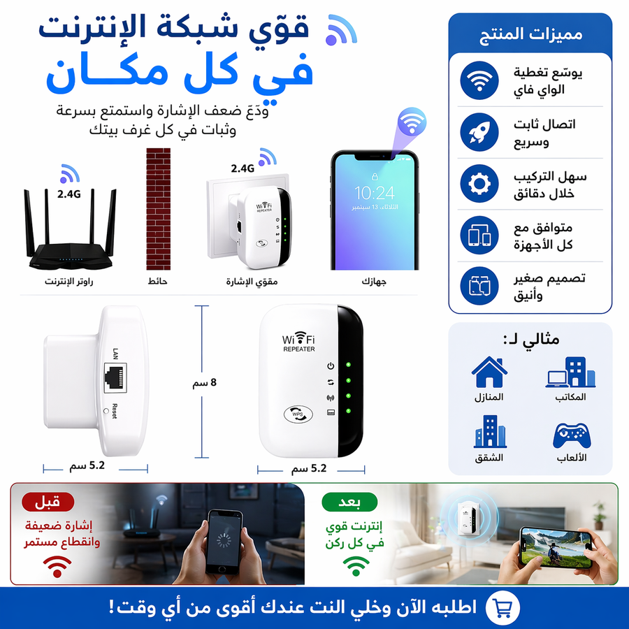 لو بتدور على حل نهائي لمشكلة ضعف الواي فاي، فـ مقوي الإشارة ده اختيار ذكي واقتصادي 👌